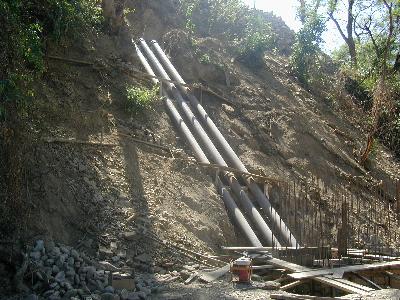 La justa distribución de las aguas a lo largo del valle, una de las tareas principales del proyecto se realiza mediante canales abiertos en los estribos del valle. Un sifón con una longitud de 170 m conduce un caudal de 680 l/s a la margen derecha del valle y abastece así las localidades de Chilon y Montegrande con agua proveniente de la presa. El sistema de riego tradicionalmente se ha manejado por grupos de usuarios que comparten una misma bocatoma rústica en el canal. Entre ellos fue organizado el manejo del sistema de riego. Comprendía la limpieza común de los tramos enlamados para que el usuario en la cola todavía reciba agua. Con el nuevo sistema, el manejo del sistema será a cargo de la asociación de regantes, la organización que se encargará de la operación del mantenimiento del sistema. Con el aporte monetario de cada usuario se mantendrá un personal que limpiará los canales donde sea necesario. |